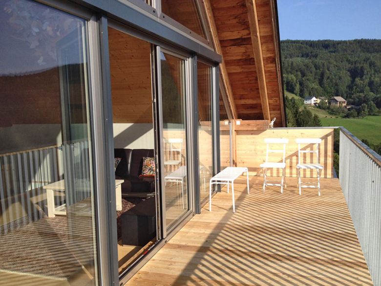 Das Sky betritt man gleich vom Parkplatz her über die Eingangsterrasse, die zugleich Wohnterrasse ist. Diese Ferienwohnung besticht durch ihre Helligkeit und eine luxuriöse Großzügigkeit im Innern, das ein entspanntes Betrachten der einzigartigen Landschaft im Außen über die großen Fensterflächen ermöglicht. Dieses Loft vermittelt einfach die Leichtigkeit und das Gefühl von Freiheit, wenn man sich auf den 4 Ebenen bewegt. Und man ist dem Himmel so nah…